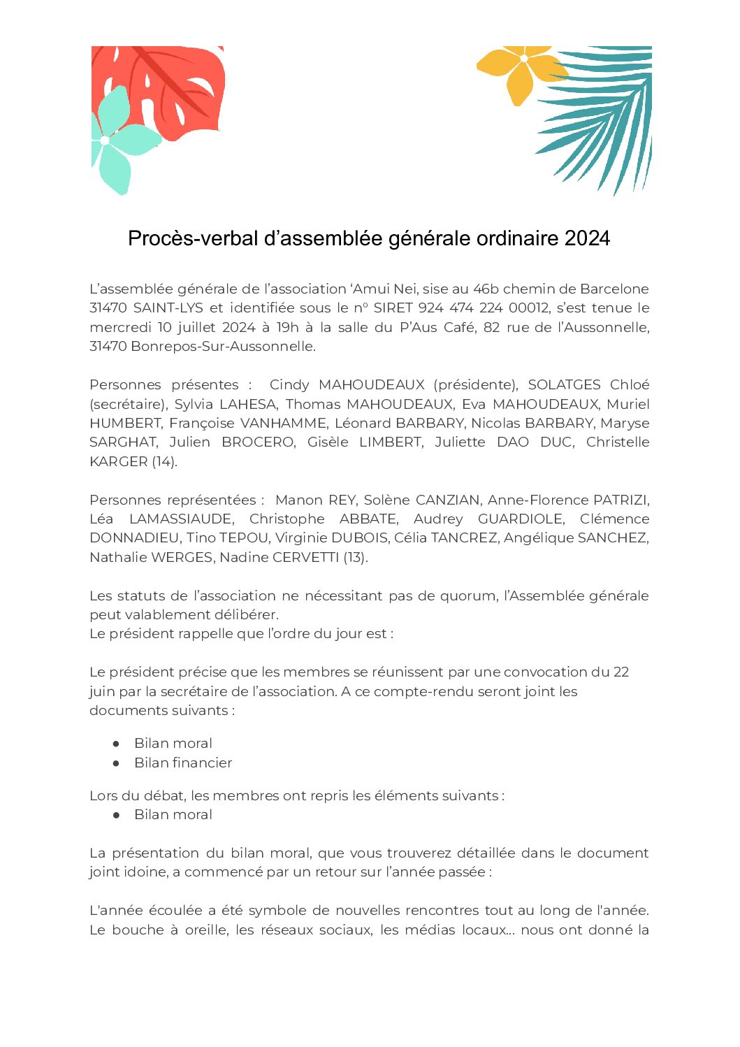 Le procès verbal complet de l'assemblée générale ordinaire 2024